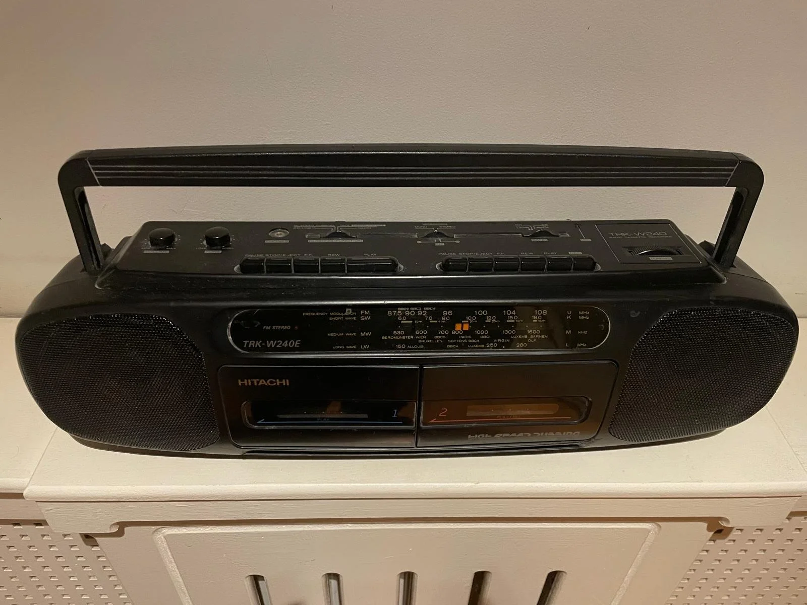 I knew exactly what I wanted Heather’s stereo to look like. Twin tape decks in the middle, and speakers on the ends. Plastic. Long handle over the top. A retractable radio aerial at one corner. Something you could plug into the mains, or put a stack of batteries in and carry outdoors. I also knew exactly what I would have called it. What absolutely everyone called it.